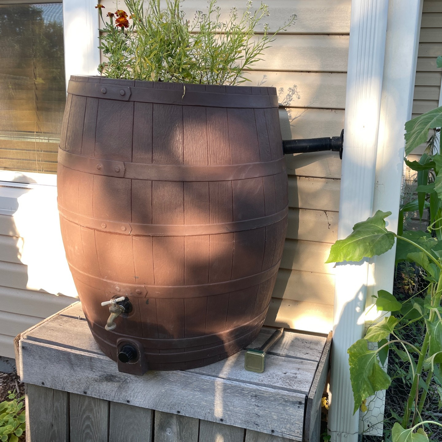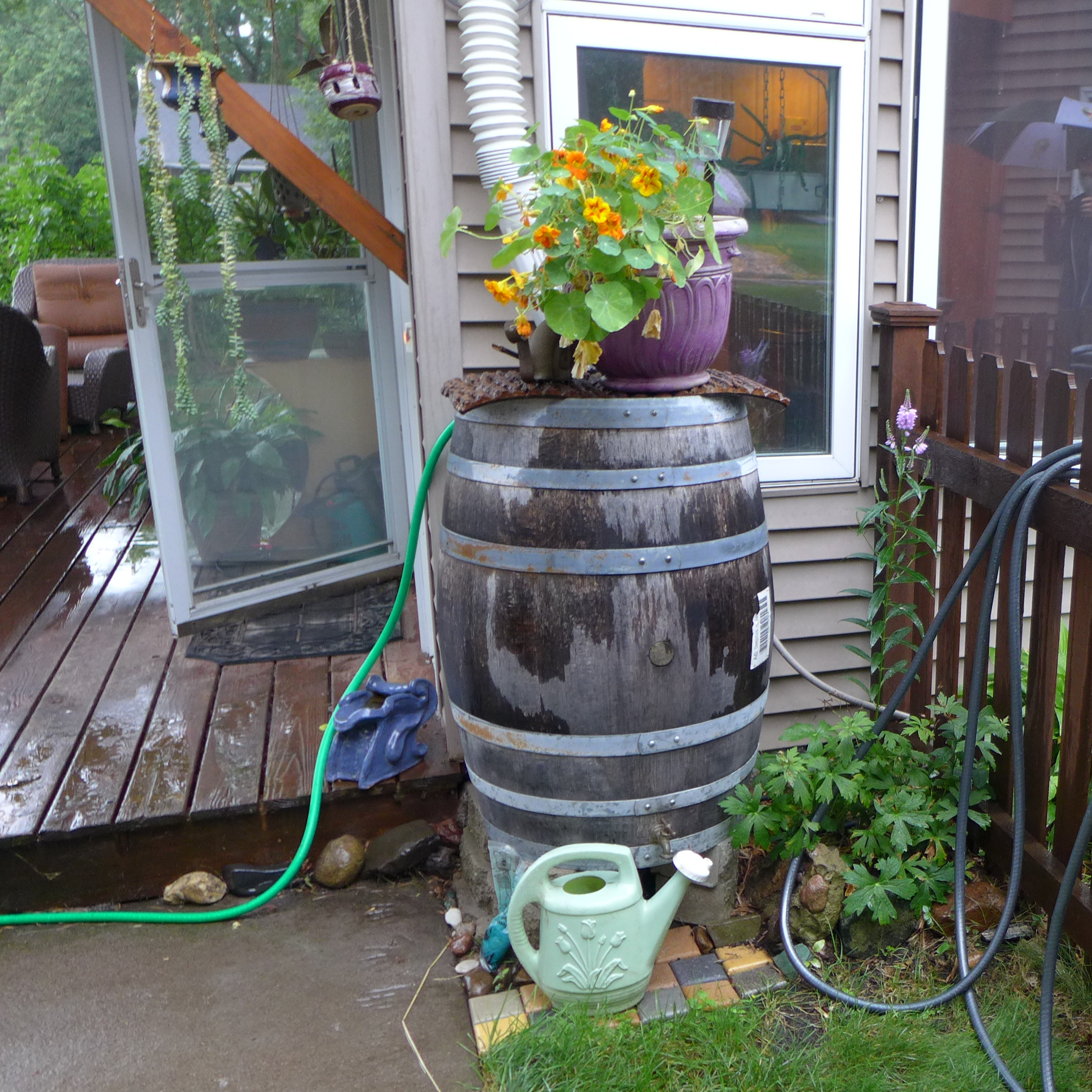 A rain barrel may be a good fit for your home. Rain barrels collect water from rooftops during rain events, reducing runoff and erosion. Water that collects in rain barrels can be used for watering your lawn or ornamental plants.
