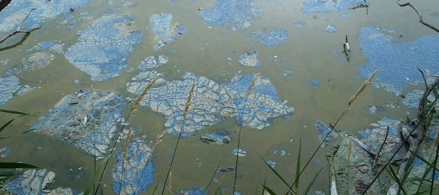 Watch for: A blue-green, green, gold, brown, or even red dye in the water. May or may not stick to a paddle. Free-floating, potentially with fowl odors.