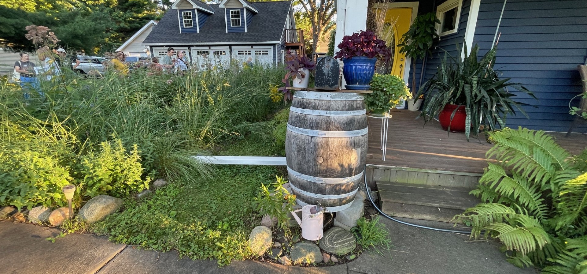 A rain barrel may be a good fit for your home. Rain barrels collect water from rooftops during rain events, reducing runoff and erosion. Water that collects in rain barrels can be used for watering your lawn or ornamental plants.