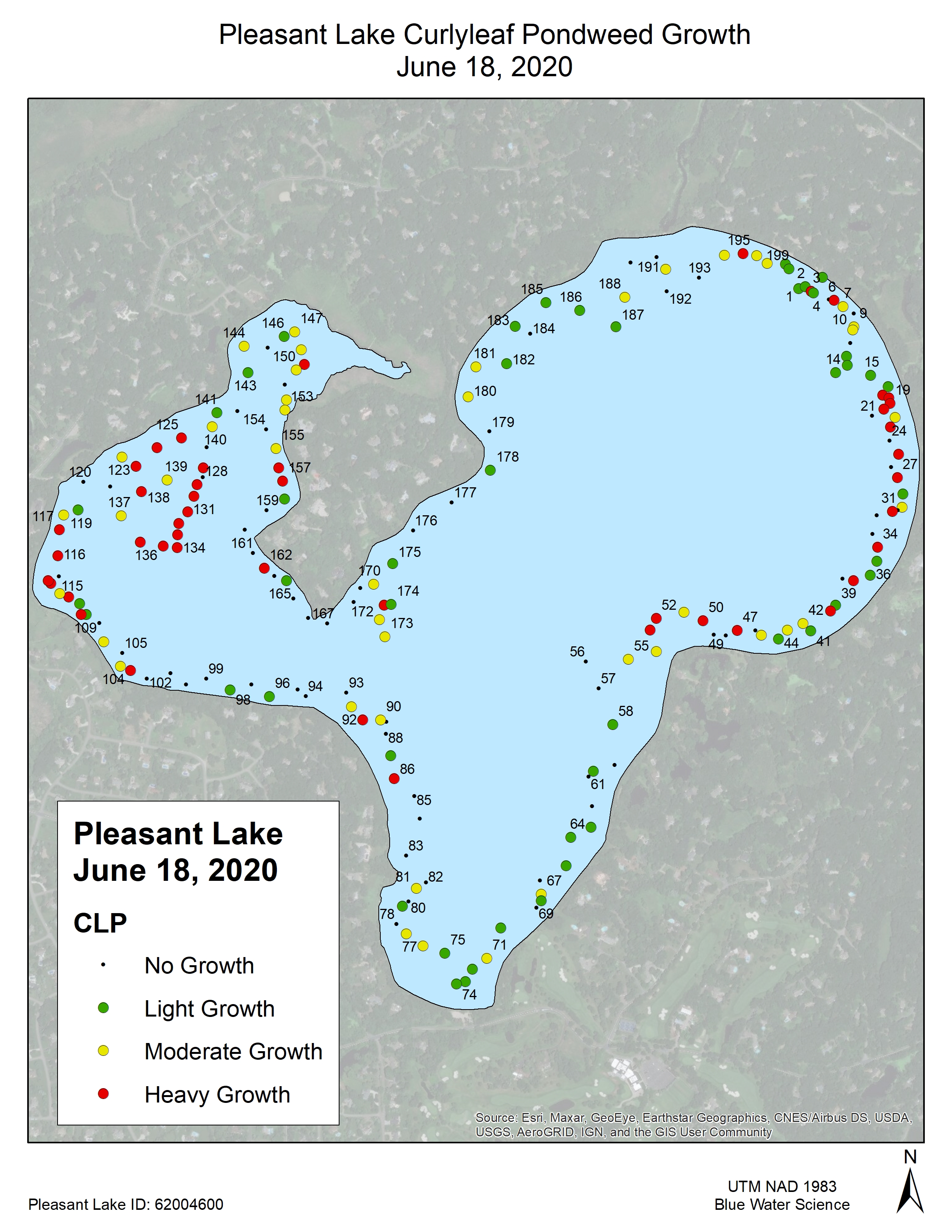 Aquatic plants vs native plants found in Pleasant Lake: February 2024